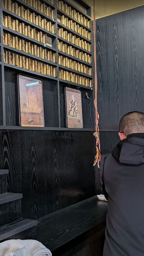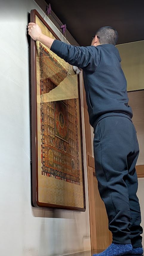 また、普段壇上には登れないので、大きな曼荼羅の額もふきあげます。
