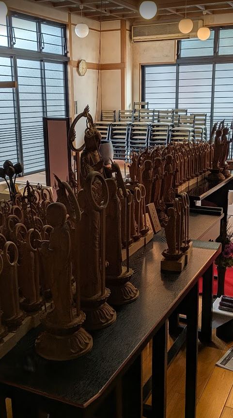 寄進いただいたお地蔵様があるのですが、そのすべてを移動して棚を拭きます。