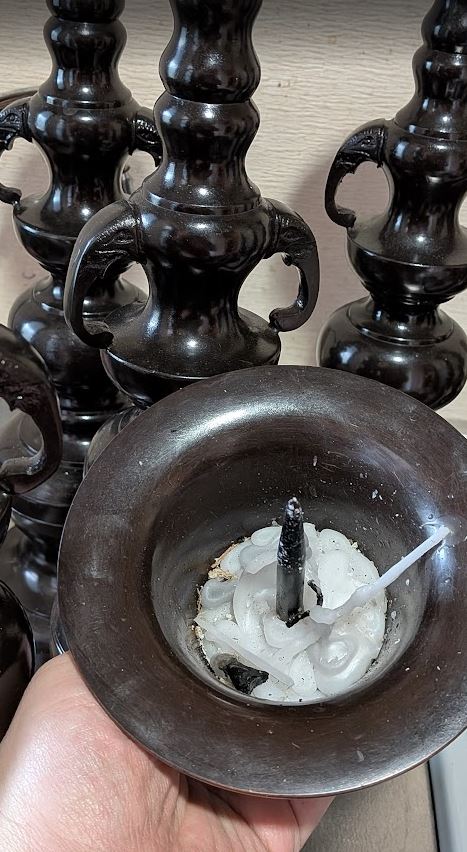 地味ですが、燭台も蝋を取り除いて、綺麗にしています。