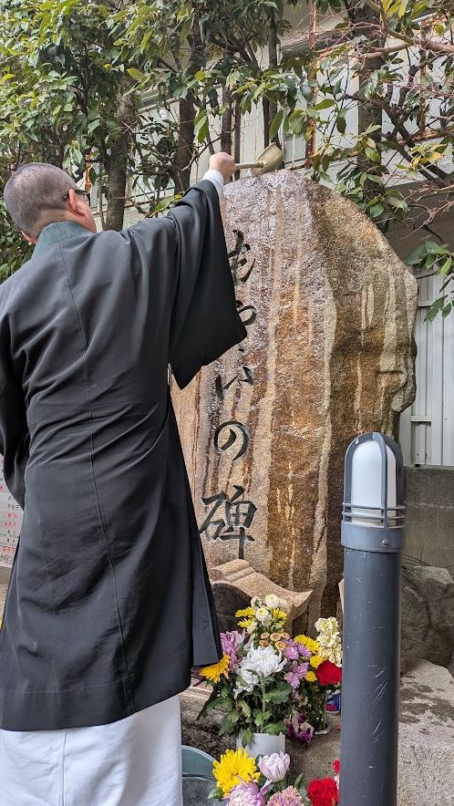 永代供養合同墓「もやいの碑」のご供養は毎月1日10時より、もやいの碑の前で勤めさせていただいております。